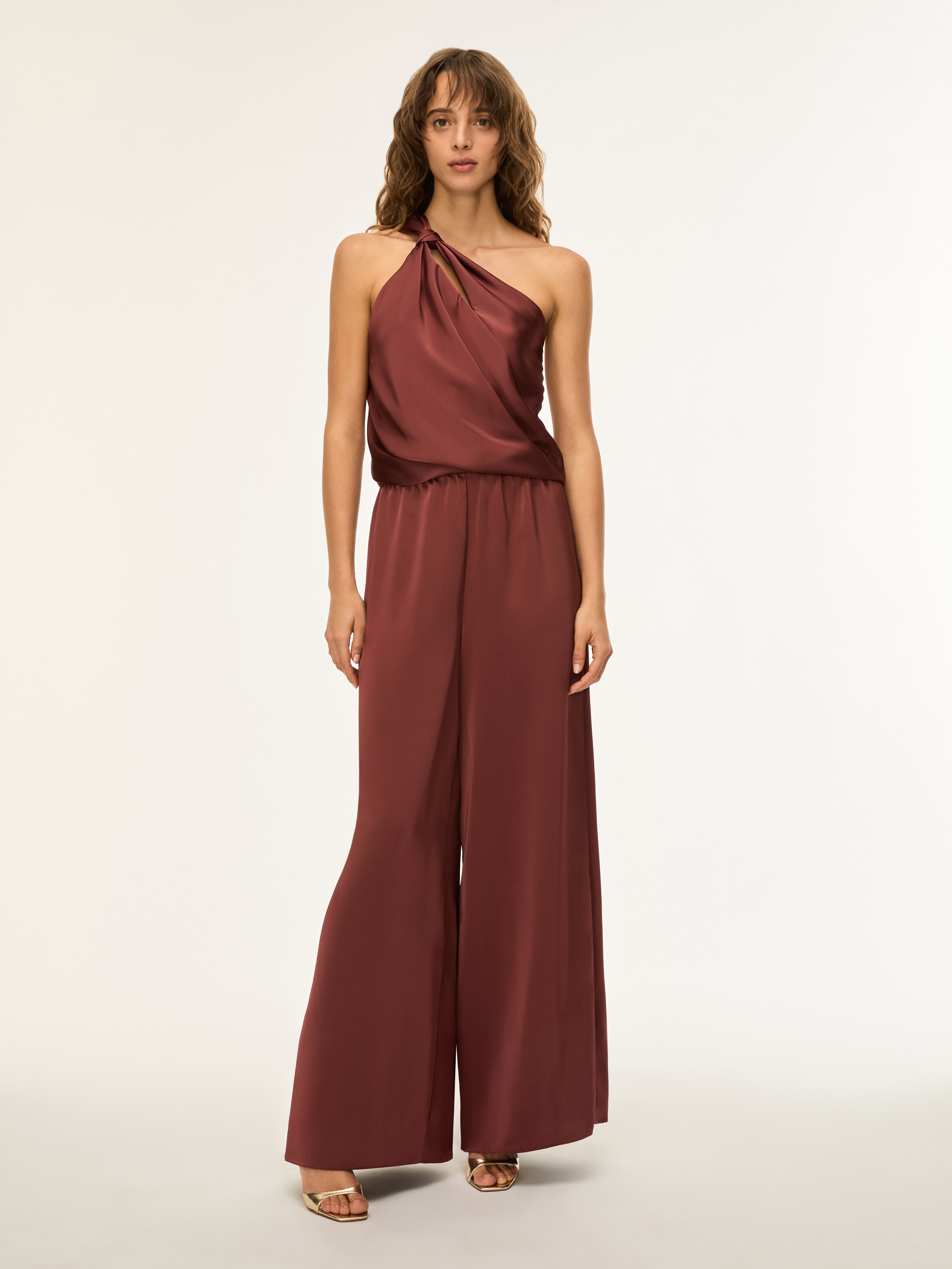 • Asymmetrical one-shoulder neckline with knot detail and a sleeveless design